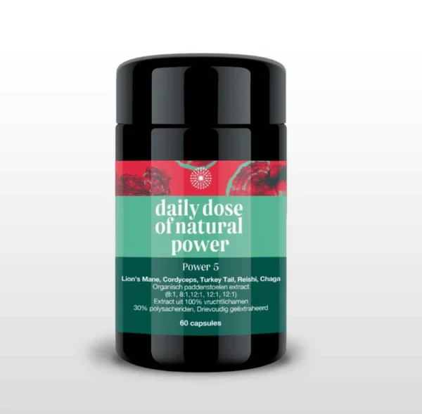Shroom powder capsules. The Power 5 capsules from Foodsporen are a blend of the 5 most powerful mushrooms from the mushroom kingdom, specially composed for your health! If you want to experience the effects of these 5 powerhouses together or if you can’t choose between these 5 winners, (we get that) then the Power 5 mushroom complex is just right for you! Each vegetable capsule is richly filled for you with highly concentrated mushroom extract which are made from the fruiting bodies of our mushrooms. Our power 5 mushroom extract capsules contain no less than 30% polysaccharides!
